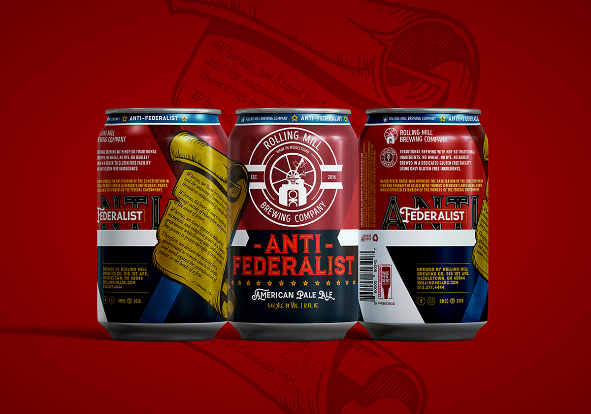 Design + illustration for Rolling Mill Brewing Company's Anti-Federalist American Pale Ale